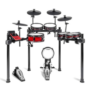 Batteria elettronica serie Nitro, con pelli mesh per una risposta naturale e bassa rumorosità ambientale, equipaggiata con pad rullante profondo da 10 a due zone, 4 pad tom da 8 a due zone, pad hi-hat da 10 a due zone completo di pedale, pad crash da 10 a due zone (con funzione choke), pad ride da 10 a due zone, torretta kick drum da 8 con pelle mesh completa di pedale, rack in acciaio solido e stabile, centralina/modulo sonoro, alimentatore, cavi di collegamento, chiavi per montaggio e copia di bacchette. Include: software BFD Player con pacchetto di suoni premium (e possibilità di acquistare ulteriori espansioni) utilizzabile collegando la batteria a un computer Mac o Windows via USB, abbonamento gratuito di 90 giorni a Drumeo.Caratteristiche centralina/modulo sonoro: 36 kit classici e moderni + 16 kit definibili dall’utente basati su 529 suoni della famosa batteria software BFD con qualità e feeling incredibilmente realistici; riverbero ed EQ a 3 bande; metronomo, sequencer e performance recorder; 80 song di accompagnamento; drum coach; metronomo, sequencer e performance recorder; display LED; ingresso a 25 pin per cavi trigger; 2 ingressi con jack da 1/4 per tom e piatto aggiuntivi (non inclusi); uscita audio stereo L e R con jack da 1/4; uscita cuffia stereo con jack da 1/8; ingresso audio Aux stereo con jack da 1/8; connettività audio Bluetooth per suonare assieme ai brani audio preferiti; porta USB di tipo B (USB-MIDI) per l’utilizzo di virtual instrument e software di registrazione; alimentazione 9 V, 500 mA.N.B. Verificare nel sito del costruttore i requisiti minimi di sistema e i sistemi operativi Mac, PC e iOS attualmente supportati.