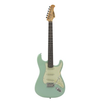 Chitarra elettrica, stile strato, corpo in basswood, manico e tastiera in acero con radius 9,5'', capotasto in ABS, meccaniche die-cast, 3 pickup single-coil in alnico V, selettore a 5 vie, un controllo di volume e due toni, equipaggiata con corde Savarez Electric Hexagonal Explosion mixed 9.46 (H50XLL). Peso approssimativo 3,70 kg.