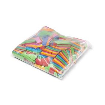 Borsa riempita con coriandoli multicolori da 1KG rettangolari 55 x 17mm. I coriandoli BeamZ sono fatti di carta velina e cadono lentamente. Ignifugo conforme a DIN4102-1, certificato di classe B1. Per l'uso in BeamZ CC1200 Confetti Launcher (160.762).